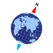 Red and blue pointers are north and south needles of a compass and in between is the globe with 23.5 degree of axial tilt. Our logo simply conveys explorers mapping the earth without any boundaries.